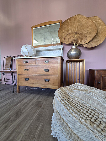 L’espace boutique est un lieu convivial aménagé avec le mobilier restauré qui peut être acheté sur place.