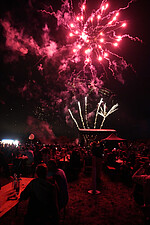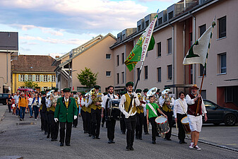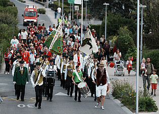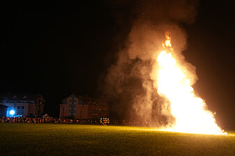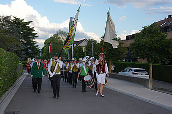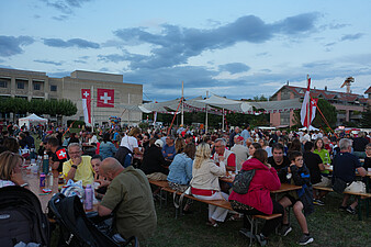Le soir, dès 18h, la fête populaire bat son plein sur la place de fête du complexe de Grand-Champ, avec divers stands de nourriture et de boissons. À 19h15, un cortège avec lampions et drapeaux se met en route en musique, accompagné par la fanfare, depuis la place de la Gare jusqu’à l’Administration communale où se déroule la partie officielle.