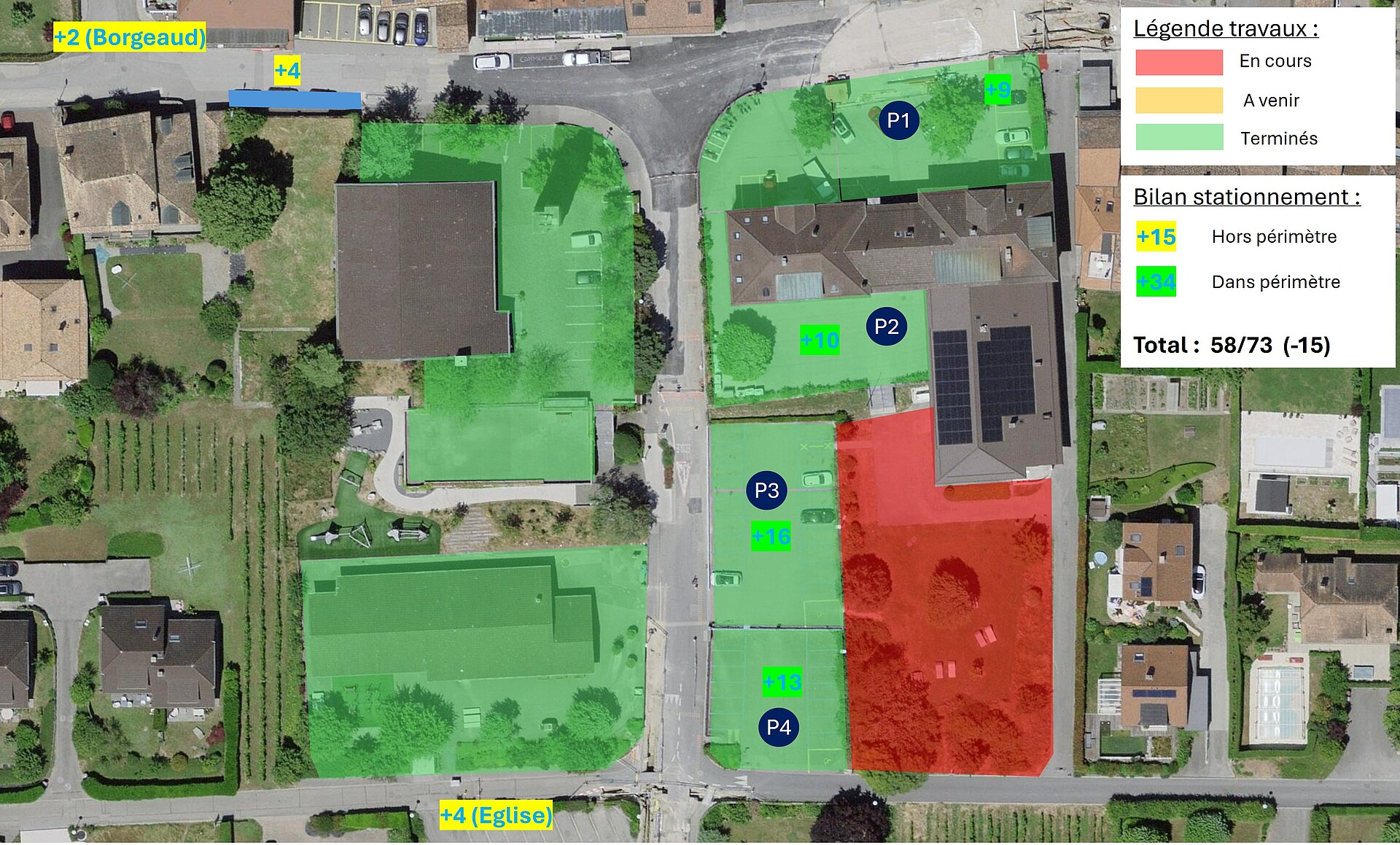 À partir du 4 septembre, le parking P3 sera fermé pour une durée d’environ un mois afin de permettre la poursuite des travaux. Merci d’anticiper vos déplacements dans ce secteur.