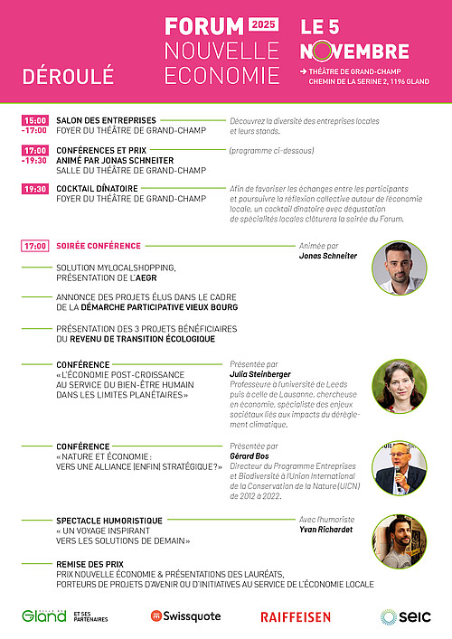 L’entrée est libre, mais les places étant limitées, il est vivement recommandé de s’inscrire sur gland.ch/forum