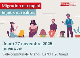 Le jeudi 27 novembre 2025, de 19h à 21h, la commune de Gland et l’Etablissement vaudois d’accueil des migrants (EVAM) ont le plaisir de vous inviter à une soirée de projection et d’échange autour de l’intégration et l’accès à l’emploi pour les personnes migrantes.